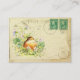 Ein bisschen Ephemera mit meinem Gemälde eines Babyrobin. Der kleine Babyvogel sitzt in den Violetten. Der Hintergrund ist eine antike Postkarte und ein bisschen Skript schreiben.