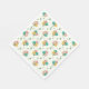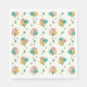 Ein Muster aus Baby-Rose-Tipps in Gelb, Pink und Türkis mit grünen Blättern auf Papier-Partyservietten