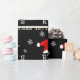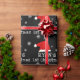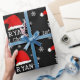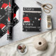 Baby`s erstes Weihnachts Rote Weihnachtsmannmütze Snowflake Wrapping Paper. Niedliches Baby First Christmas Design mit Weihnachtsmannmütze, Schneeflocken und einem Babynamen in einem weißen Drehbuch auf schwarzem Hintergrund - personalisieren Sie mit dem Namen Ihres Babys.