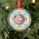 Pretty Circular Baby Girl Boy First Christmas Photo Gift Hanging Ornament. In bold colours of pink, blue, purple, and green. A muted, round border surrounds the picture in the middle. Replace the photo with a picture of your own beautiful new baby boy or girl, or child. The text at the top says “Your Christmas Words Here 1” in purple. At the bottom are the words “Your Christmas Words Here 2”, in green. Personalise this by changing the words and picture. Give as a present for a new mum at Christmas. Mama, mum, mam, mammy, mummy, mother, and your wife will love hanging up this gift decoration to celebrate the birth of their new baby and their first Christmas. In lovely, bright and light colours.