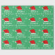 Baby`s erstes grüne Weihnachtsmannmütze Snowflake Wrapping Paper. Niedliches Baby First Christmas Design mit einer Weihnachtsmannmütze, Schneeflocken und einem Babynamen in einem weißen Drehbuch - personalisieren Sie mit dem Namen Ihres Babys.