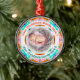 Pretty Circular Baby Girl Boy First Christmas Photo Gift Hanging Ornament. In bold colours of pink, turquoise blue, purple, and orange. A bright, round border surrounds the picture in the middle. Replace the photo with a picture of your own beautiful new baby boy or girl, or child. The text at the top says “Your Christmas Words Here 1” in orange. At the bottom are the words “Your Christmas Words Here 2”, in teal green. Personalise this by changing the words and picture. Give as a present for a new mum at Christmas. Mama, mum, mam, mammy, mummy, mother, and your wife will love hanging up this gift decoration to celebrate the birth of their new baby and their first Christmas. In lovely, bright and light colours.