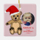 Niedlich Pink Baby`s First Christmas Teddy Bären Weihnachtsmannmütze Foto Keramik Ornament. Niedlicher Teddybär mit roter Weihnachtsmannmütze. Der Hintergrund ist rosa mit weißen Schneeflocken. Geben Sie Ihren Namen, Ihr Foto und Ihr Geburtsjahr ein.
