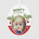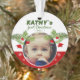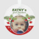 Niedliches Baby`s erste Weihnachtsfeier Weihnachtsmannmütze Snowflake Pine Foto Ornament. Kiefernäste mit Weihnachtsmannmützen und Schneeflocken. Personalisieren Sie das Ornament mit dem Foto, dem Namen und dem Geburtsjahr Ihres Babys. Ein süßer Sake für das 1. Weihnachtsfest des Babys.