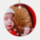 Die erste Weihnachtsfeier mit Snowflakes Foto Ornament. Niedliches Baby First Christmas Design mit einer Weihnachtsmannmütze, Schneeflocken und einem Babynamen und Geburtsjahr in einem roten Drehbuch. Die Schneeflocken überlagern das Foto auf der Rückseite - legen Sie Ihr Baby-Foto in die Vorlage. Schaffen Sie sich Ihren eigenen Weihnachtskuchen.