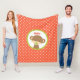 Eine Decke mit einem niedlichen Affen, der einen Schnuller in seinem Mund in einem Kreis mit einer olivgrünen Grenze hält. Das Wort Hallo über seinem Kopf, die mit einem Namen oder anderen Text angepasst werden kann. Der Hintergrund ist ein orangefarbenes und weißes Polka-Punktmuster.