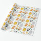 Diese Verpackungspapier-Eigenschaften verlassen niedliche clipart Safari-Tiere der Safari themed einschließlich einen gelben und braunen Löwe, einen grauen Elefanten, eine braune und orange Giraffe, braunen Affen, einen Schwarzweiss-Zebra und einen Orangen- und Tantiger mit Grün in-between.