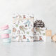 Dieses geschlechtsneutrale "Baby ist kalt draußen" Baby Shower Sonderverpackungspapier zeigt eine niedliche, handgezeichnet Abbildung von winterlichen Baby-Schlafanzügen, gestopften Tieren und Bierchen, die an einer Wäscheleine hängen, gegen ein Muster von Weihnachts-Schlafanzug, geplüschten Tieren, Babyflaschen, Bierbecher, Schnuller, Geschenke und winzige gelbe Sterne. Anpassbarer Name, Ereignis und Datum. Eleganter weißer Hintergrund.