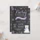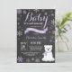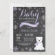 Baby seine kalte Außenpolar Bear Winter Girl Babydusche Einladung.Einladung zur Kinderdusche. Winter Holiday Baby Dusche einladen. Lila und weiße Schneeflocken. Snowman und Chalkboard Hintergrund.