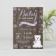 Baby seine kalte Outside Polar Bear Winter Girl Babydusche Einladung. Einladung zur Kinderdusche. Winter Holiday Baby Dusche einladen. Rustikaler Holzhintergrund. Land Vintag Retro. Lila und weiße Schneeflocken. Hintergrund für Snowman und Chalkboard. Für weitere Anpassungen klicken Sie bitte auf die Schaltfläche "Anpassen" und verwenden Sie unser Designwerkzeug, um diese Vorlage zu ändern.