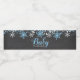Niedliche blau-weiße Schneeflocken-Rahmen und Script-Schriftart auf einem Chalkboard-Hintergrund schmücken diese einzigartigen Wasserflaschen-Etiketten. Ideal, um einer kleinen Babydusche eine individuelle Touch hinzuzufügen.