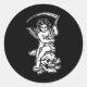 Baby Sensenmann Skull Scythe Blackwork Tattoo Flas Runder Aufkleber