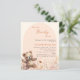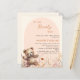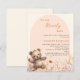 Wir können frühzeitig auf die Einladung von Baby Shower warten. Cremefarbener Hintergrund und pfirsichfarbener Bogen. Die Wildblumen sind in Beige, Rosa und Teddybär in Aquarellfarben gehalten. 1 Blatt = 1 Einladung mit Druckkante bis Kante.