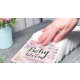 Leider ist beim Bestellvorgang nicht die Größe angegeben, zumindest habe ich es nicht gesehen. Der Name "Duschen"-Servietten ist etwas seltsam :-) Aber man kann aus verschiedenen Designs auswählen und es sieht ganz nett aus. Ich würde mir aber noch viel mehr verschiedene Farben und Muster wünschen! Insgesamt eine nette Idee für ein personalisiertes Accessoire zu allen möglichen Feiern. Der Druck ist OK, er ist nur ganz leicht unscharf.