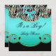 Baby Shower Boy Aquamarin Blue Black Zebra Einladung