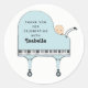 Niedliche Babyduschgeschenkaufkleber, vielen Dank an Gastgeschenk-Labels und Umschlag Aufkleber mit blauem Baby-Flügel, die als Stollen entworfen wurden. Text bearbeiten, um den Namen der künftigen Mutter hinzuzufügen.