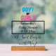 Junge oder Mädchen ist in hübscher blau-rosa Typografie geschrieben. Fügen Sie Mama-to-be Name und Baby Shower Date in schwarz kursiv in das geometrische schwarze Rechteck ein. Ein Sweet Baby ist auf dem Weg ist in schwarz Skript geschrieben. Hintergrund löschen Elegante Tafelanzeige. Entwürfe von TamiraZDesign.