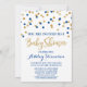 Maßgeschneiderte Baby Dusche Einladung in festlich und modern dunkelblau und gold Glitzer Effekt Konfetti Muster (bitte beachten Sie, dass Glitzer nur gedruckt ist nicht Glitzer).