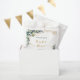 Für eine elegante Babydusche, geschlechtsneutral. Ein schick weißer Hintergrund. Ein schick weißer Hintergrund. Dekoriert mit grünen Aquarellen Eukalyptusbäumen, Blätter, Grünpflanzen, Imitaten vergoldeten Blätter und goldenen Glitzer Flecken. Personalisieren und fügen Sie den Namen der Mutter zu sein, ein Datum und ein Dankeschön Notiz. Schwarze und goldene Buchstaben.