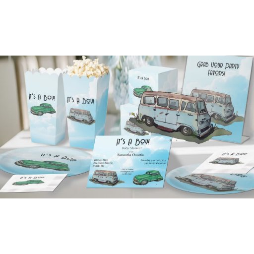 Baby shower for a boy, Van and sedan Geschenkschachtel