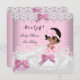 Afroamerikanischer, Vintager Niedlicher Vintager Baby Dusche Girl Pink Baby in Teacup mit Kuchen. Party aus rosa und weißem Tee, Pink Polka Dots Spitze und Bow Ribbon Einladung, bezauberndes neues Baby, Baby Girl Gorgeous