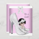 Baby Shower Girl Pink Silver White Glitzer Shoe Einladung