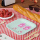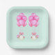 Creative Girl-Zwillinge duschen Teller mit zwei Mädchen und rosa Ballons.