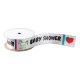 Baby Shower typography in black with red hearts element. Whimsical green horse and pink and blue vertical stripes. Designed for 1.5" width. See store for design in 3" width. (See item material description). Original Artwork Design by TamiraZDesigns.