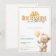 A warm and gender-neutral baby shower invitation with soft sunshine tones and a sweet teddy bear design, perfect for celebrating your little sunshine.