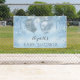 Für eine elegante Babydusche. Ein hellblaues Imitat mit metallisch anmutendem Hintergrund. Dekoriert mit Imitaten Glitzer Tropfen, Farbe Tropfausdruck, Glitzer Staub und blau-und silberfarbene Ballons. Personalisieren und einen Namen hinzufügen. Perfekt sowohl als Begrüßungsbanner als auch als Party.