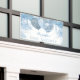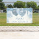Für eine elegante Babydusche. Ein schick weißer Hintergrund. Dekoriert mit Imitaten Glitzer Tropfen, Farbe Tropfausdruck, Glitzer Staub und blau-und silberfarbene Ballons. Personalisieren und einen Namen hinzufügen. Perfekt sowohl als Begrüßungsbanner als auch als Party.