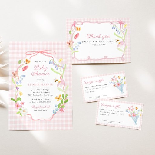 Spring Floral Pink Gingham Baby ShowerDesignt von MOONDAISY STUDIO