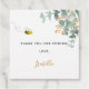 Ein schick weißer Hintergrund mit grünem, wasserfarbenem Eukalyptusgrün, Blätter, einem goldenen Imitat und einer niedlichen, fröhlich lächelnden Hummel. Personalisieren und fügen Sie den Namen der Mutter, Mama zu sein und das Datum. Schwarze und goldfarbene Buchstaben. Der Text: Baby Shower ist mit einem angesagten, handgeschriebenen Style-Skript geschrieben. Zurück: ein Dankeschön, Notiz und Name.