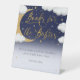 This is an adorable baby shower books for twin babies pedestal sign based on the phrase “We are over the moon”. The design features a cute handwritten script calligraphy font, a bright golden moon accompanied with gold stars and cute fluffy clouds in a twinkling starry night sky.