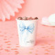 Paper Cups Baby Shower sind mit einer reizenden Illustration eines zarten Schleifens verziert.