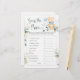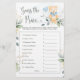Dieses Design zeichnet sich durch einen freundlichen Teddy Bär mit blauer Bogen und Herzballon aus. Er ist von grünem Blattwerk umgeben. Raten Sie mal, was das Baby Shower Spiel kostet.