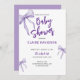 Invite friends and family to celebrate the Mother-To-Be with this Baby Shower Invitation designed in soft shades of purple with decorative watercolor bows. The front text includes: Please Join Us For A, Baby Shower, Honoring, The Name, Date, Time, Location Name (venue or residence), Address and RSVP Details. The reverse is a matching shade of soft purple. To personalize this invitation, simply insert your event details into our easy template, replacing the sample text.
