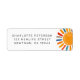 Diese sonnige Baby-Shower-Rücksendeadresse ist mit einer farbenfrohen Wasserfarben-Sonne dekoriert.