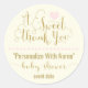 Vielen Dank für Aufkleber für Hochzeiten und Duschen mit der Phrase "A Sweet Danke" in Gold Anpassen Hintergrundfarbe, Größe und personalisieren mit Namen und Veranstaltungsdatum Kann für Vorspeisen, Süßigkeiten Buffets, Desserts und mehr Sie können den Schriftart Stil, Farbe oder Box-Typ. Klicken Sie auf Anpassen, um Ihre Optionen anzuzeigen. Vergessen Sie nicht, den Link "Dieses Design übertragen" zu nutzen, um eine ganze Themenpalette (Taschen, Schilder, Kisten, Aufkleber, Servietten und mehr!) zu erstellen.