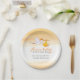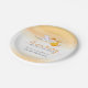 Niedlicher Baby-Duschstorch mit einem neuen Baby-Paper orange gelben Party Teller. Ideal für ein ganz besonderes Baby Duschen Party oder Event. Personalisieren Sie mit Ihrer Mutter, um Name und Wortlaut zu sein. Derzeit liest ein neues Baby ist auf dem Weg zu graben und zu ehren Mutter zu sein Danielle MacDonald. Originelle Aquarellkunst und Design von Sarah Trett für www.mylittleeden.com