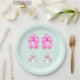 Sweet Baby Dusche Teller mit Mädchen Zwillinge und rosa Ballons.