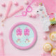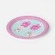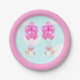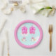Creative Baby Dusche Teller mit süßen Zwillingsmädchen und rosa Ballons.