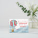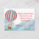 Die Beilagekarte zur Babyparty zeigt ein süßes kleines Bärchen in einem Heißluftballon, das über den Wolken fliegt.