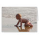 Ein niedliches Bild eines Babys, das auf dem Sand am Strand krabbelt und die Wellen des Wassers genießen kann.