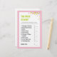 Das "Price is Right"-Spiel ist eine lustige Aktivität für jede Baby-Dusche, da die Gäste versuchen, den Preis eines Sortiments von Babyartikeln zu erraten. Diese Karte kommt in einem rosa Farbschema mit bunten Konfetti. Die perfekte Ergänzung zu einem Baby Dusche oder Baby Sprinkle Party! Weitere Spiele und passende Artikel finden Sie unter www.zazzle.com/mypartydesign