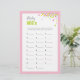 Das Baby ABCs Spiel ist eine lustige Aktivität für jede Baby Dusche, da die Gäste versuchen, die Karten mit Babyartikeln zu füllen, die mit jedem Buchstaben des Alphabets beginnen. Diese Karte kommt in einem rosa Farbschema mit bunten Konfetti. Die perfekte Ergänzung zu einem Baby Dusche oder Baby Sprinkle Party! Weitere Spiele und passende Artikel finden Sie unter www.zazzle.com/mypartydesign