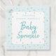 Ein skurriles Baby-Sprinkle Baby-Dusche Gefälligkeitstag mit Regenbogen-Sprinklen Rand auf einem himmelblauen Hintergrund.