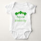 Kleiden Sie Baby im Grün für St Patrick Tag mit diesem niedlichen vierblättriges Kleeblatt irischen Grenze- und des Babys 1. St Patrick Tageszitat auf einem Babyt-shirt.