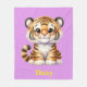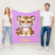 Diese Fleecedecke mit einem Baby-Tiger mit lila Hintergrund kann mit jedem Namen personalisiert werden, der Tiger mag.