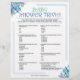Testen Sie Ihr Wissen über Neugeborene mit unserem Baby Dusche Trivia! Kannst du sie in Ordnung bringen? Die besten Antworten gewinnen! Bitte kontaktieren Sie uns direkt, wenn Sie eine Kopie der Antworten für dieses Spiel benötigen. Wir würden uns freuen, sie jedem, der das Spiel bestellt hat, zur Verfügung zu stellen.